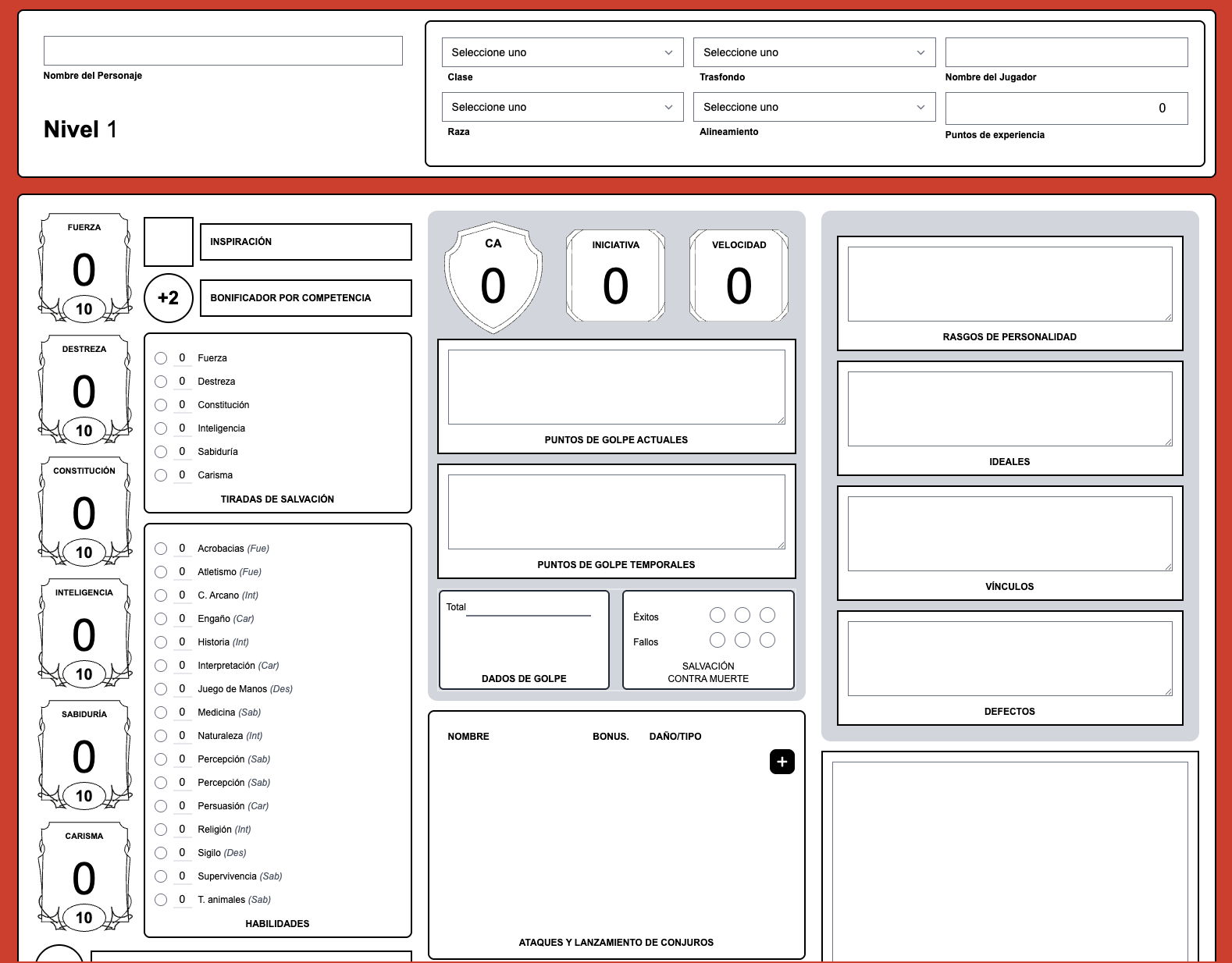 Character Sheet: A character sheet that allows players to create and edit their characters.