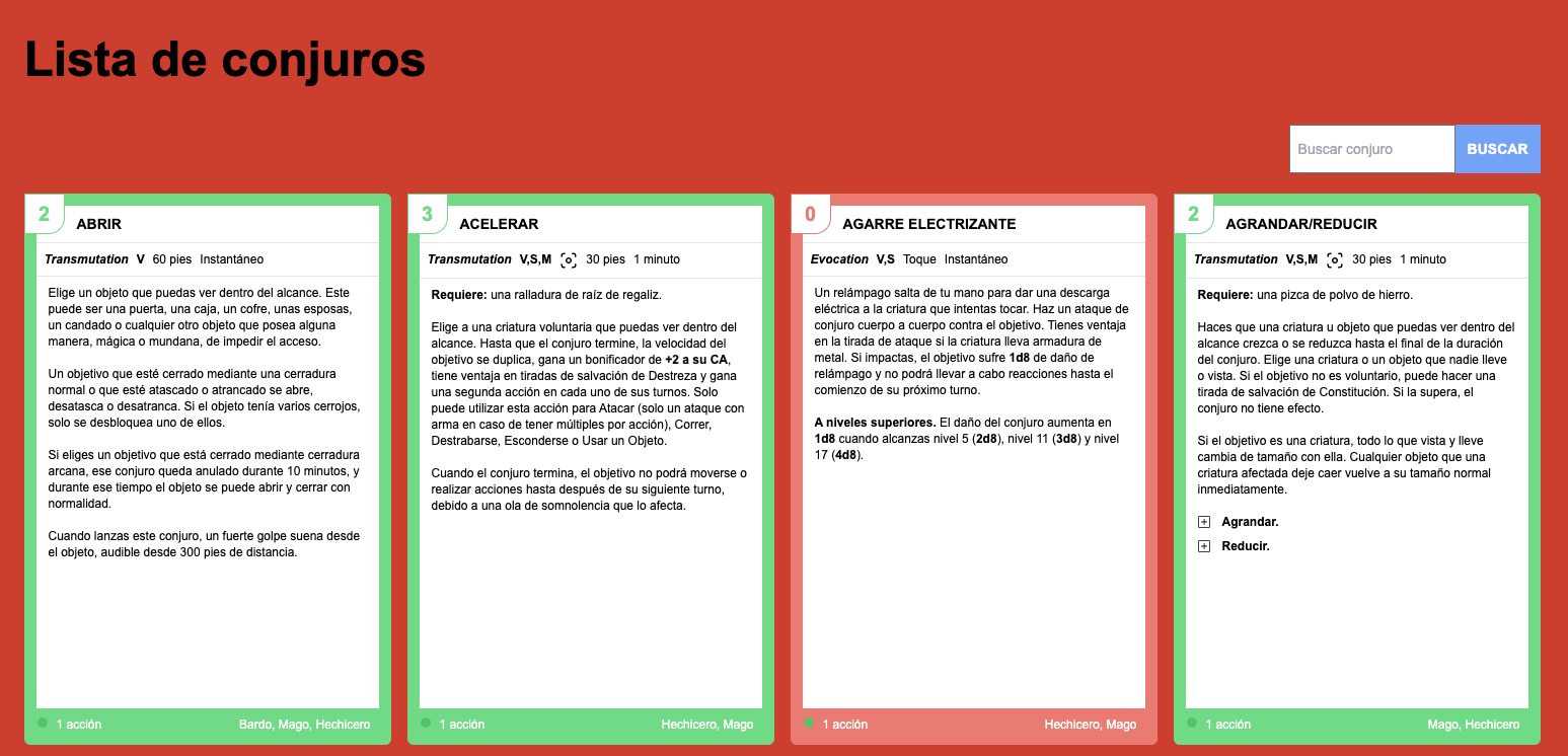 Spell List: A spell list that allows players to view and search for spells. The spells also are classified by conjurer class, school and level.